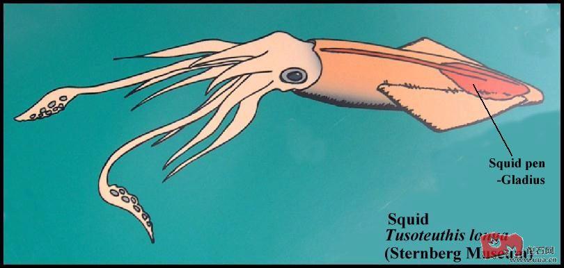 管鱿目的内壳是早期鹦鹉螺目头足类先祖外壳所遗留于体内的残余 , 内壳由肌肉附带并被包含于壳液囊内 ,能加固及支持乌贼的套膜(mantle) 。管鱿目 Teuthids化石则是根据与现今头足类品种的内壳残余作比较 , 内壳残余形状变化之不同而被分类确认。管鱿目软体部分是极难部存及形成化石的 , 因此亦不能较易判断出品种间彼此的关系 。遗憾地 , 内壳残余亦不能让我们知道这些动物如何出现及行为等详细的资料 。 我们只能透过现今的头足类的身体形状 , 视觉显示 , 生活环境的变化及动作上的差异而设想复原这些早期的生物时 , 我们还欠了多少资料 ?