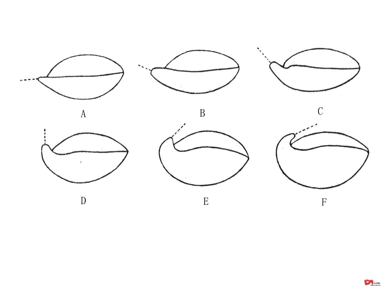 腕足动物贝体的侧视图,示壳体凸度的类型