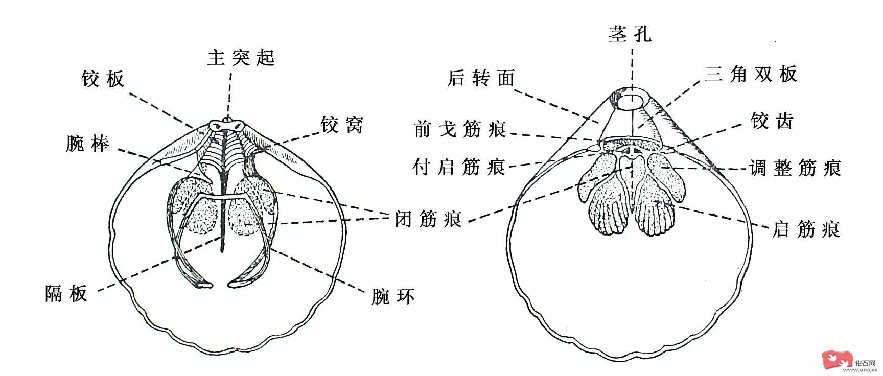 腕足动物的科目分类所根据的器官构造基本位于贝体的后部。