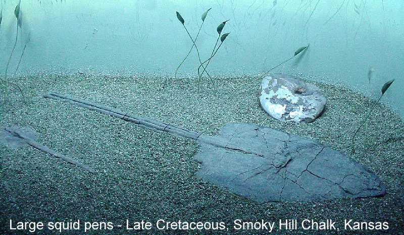 附注:箭石中一直存活的品种,直至白垩纪行将结束,它在称为“箭石坟场”的地方大量存在。