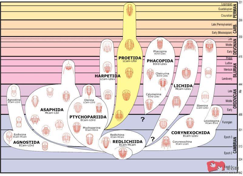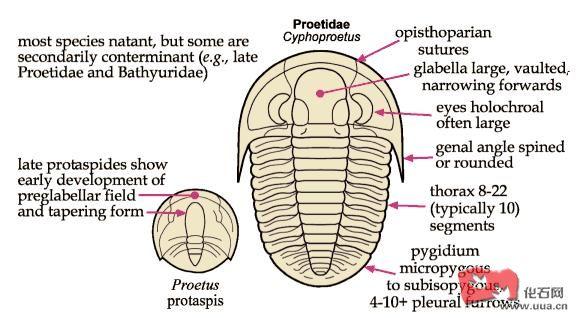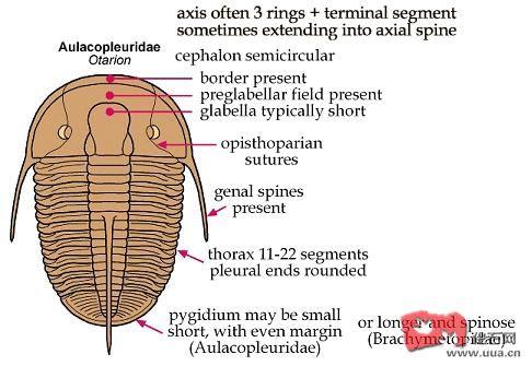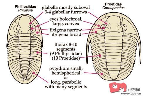 尾巴:一般比头小,但是二叠纪的典型三叶虫—菲利普虫 尾巴大一些