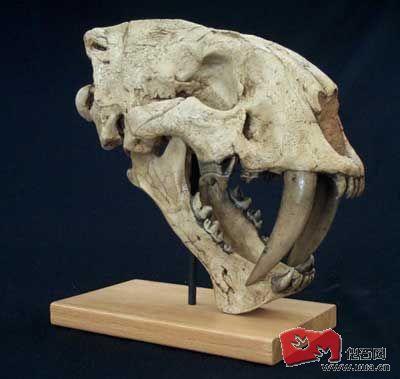 最后来介绍一下巨颏虎(Megantereon),巨颏虎是体型中等大的猫科动物,大概体型介于豹子和美洲虎之间。巨颏虎是刃齿虎族,有着细而长的匕首状上犬齿。 巨颏虎的牙齿均无锯齿。门齿小,P3双根,冠长不短于P4的三分之一。P4原尖较大,有单独的根,但在颊侧无第四根。后附尖与前尖大体等长,p4长不小于m1的四分之三。四肢骨比较粗短,但比刃齿虎(Smilodon)细长。 Megantereon旧译作"巨剑齿虎",但是它的体型根本一点也不算巨大。而且脑袋相对于身体,也算不上巨大。实际上,Megantereon这个词是希腊文巨大下颏的错误拼写(正确的拼写应该是Meganthereon)。但是,Megantereon作为一个属名的原始拼法,应该就是正确的属名。