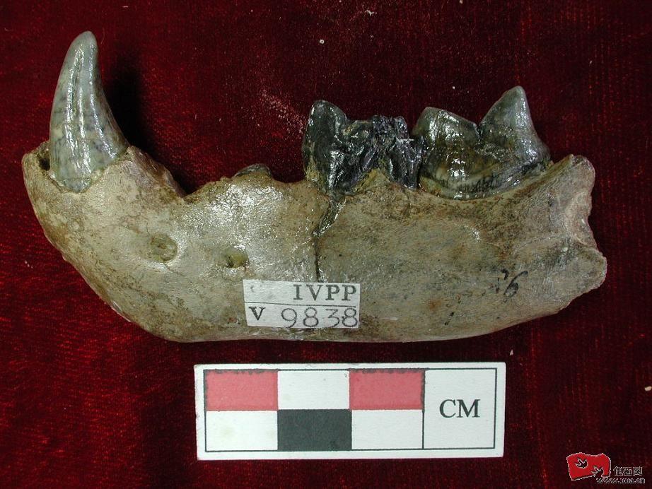 这个产自山西榆社,是一个几乎完整的下颌,被命名为Panthera sp.年代相当早,在大小上也和古中华虎比较接近。但是,当地除了发现有豹属外,还有一些后猫的化石,而二者在结构上是非常类似的.所以我觉得有点悬。