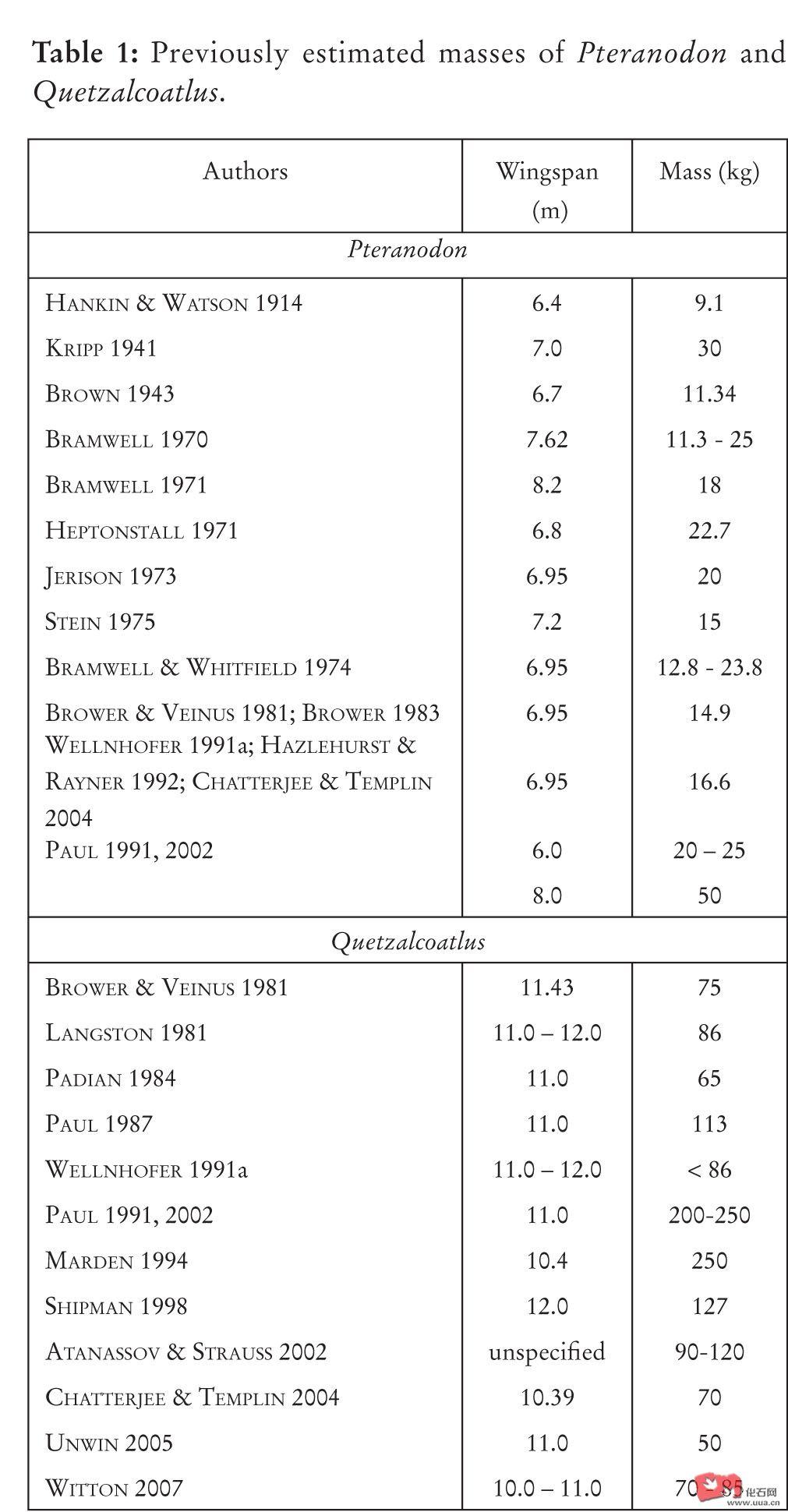 其中有一些相当轻的体重并不是参考模型,而是用鸟类飞行原理推测出飞行的上限,并以此反推的,基本上低于150kg都没有什么参考价值。