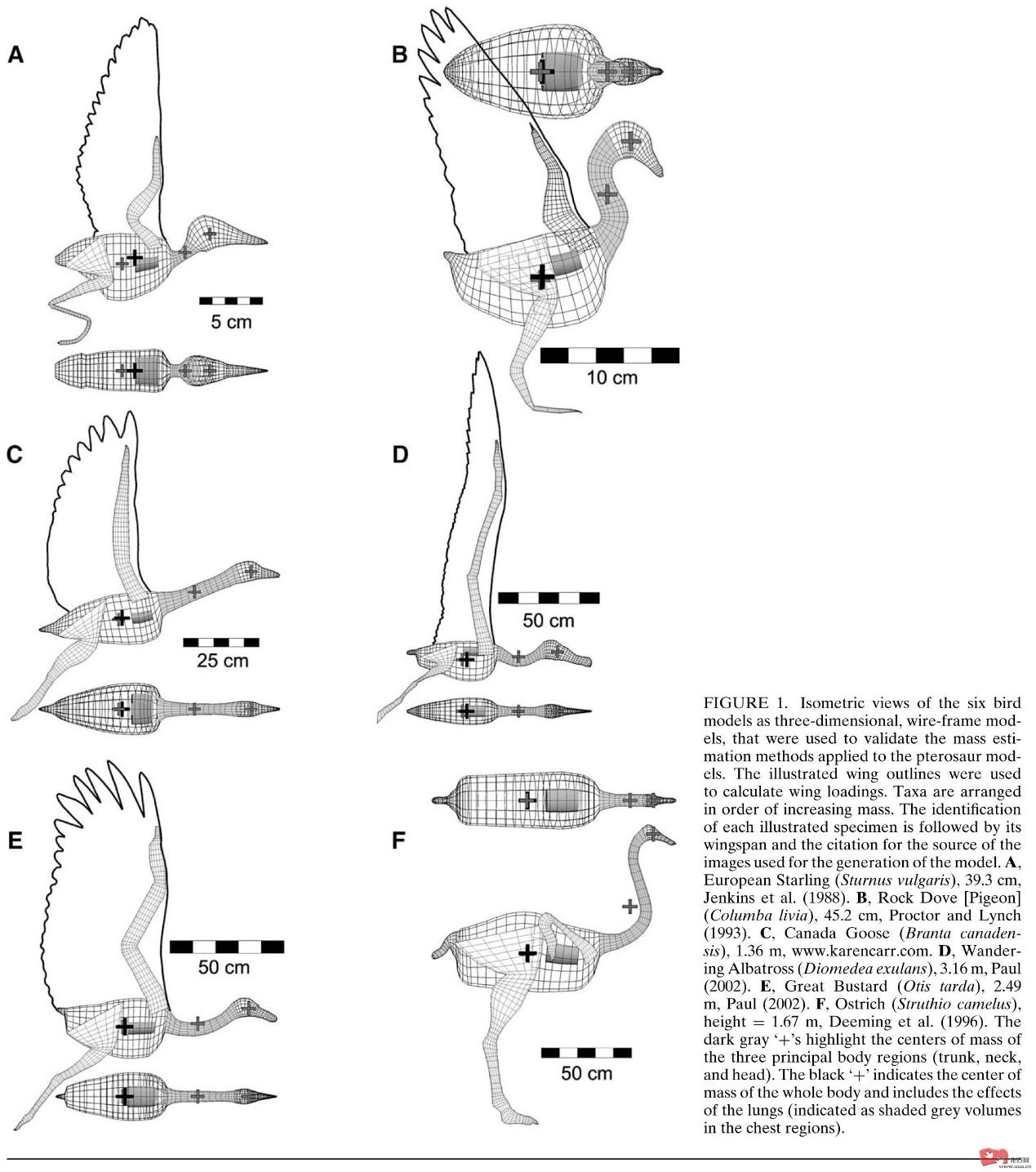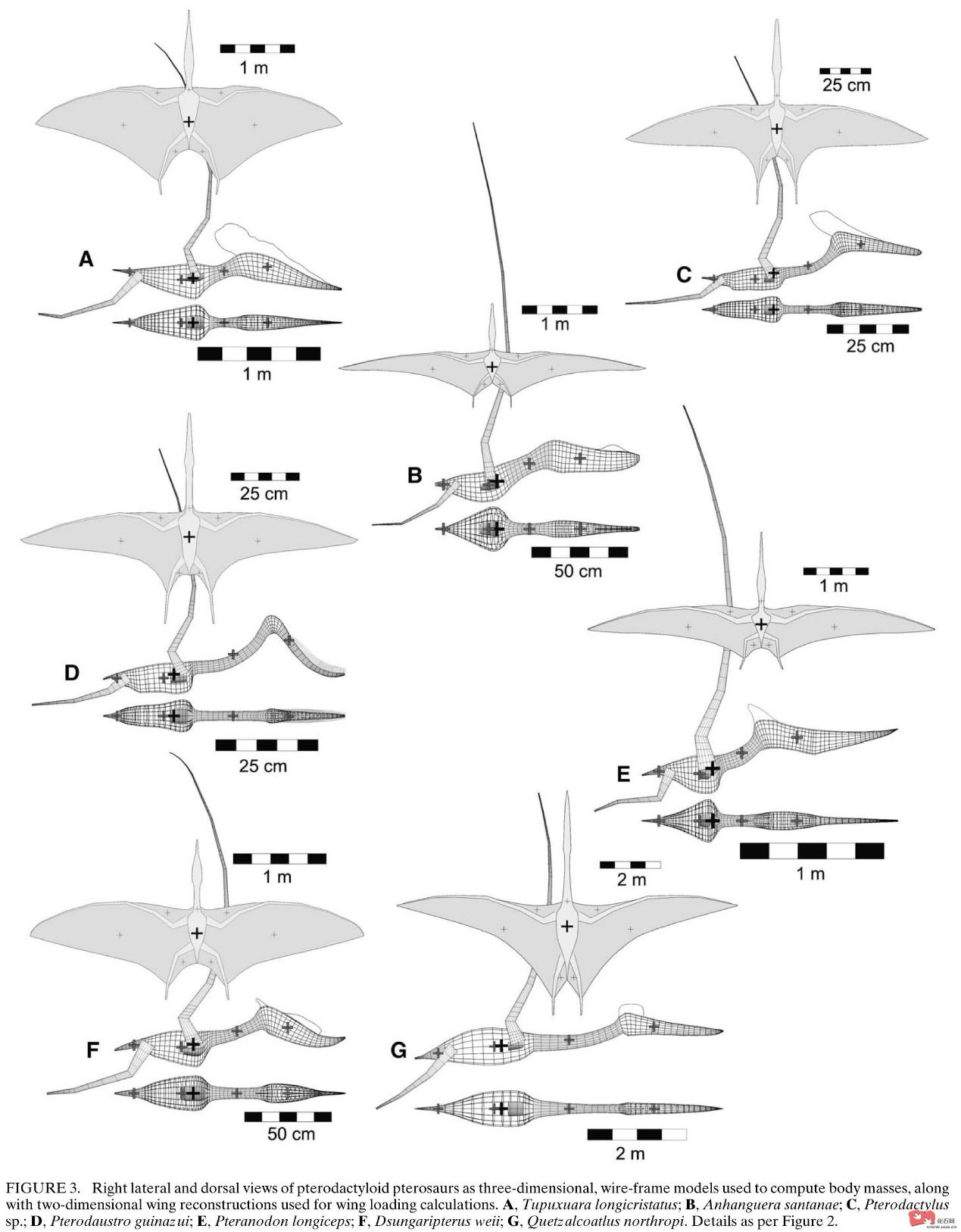 3D估重专家之一Henderson也对翼龙体重进行了估测,使用和Witton(楼上论文第一作者)一样的模型估测法,Henderson把估测过程列举出来了;我也稍微的极少一下,估测结果除了风神翼龙由于模型选择错误而卫星外,其余的估测应该都已经另外一些ie论文的作者人为是正确的,虽然有些和Witton的估重不一样。但是基本上在可靠范围内(Henderson的应该比靠公式推测更准确一些)