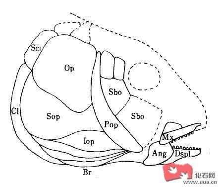 半椎鱼科的鳃盖系统是op>sop>pop.还有就是口裂小,且有sbo次眶骨,这个是半椎目的主要特点,其他还有许多不同,大家自己对比吧!