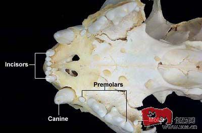 其实,按比例来说,虎头骨和豹头骨也很类似。 但是,除了上述差别外,按比例来说,虎的吻部要更宽,脑室部相对较小,乳状突相对较大,犬齿更加粗大挺拔,听泡按比例来说更小(这点不是很确定)。 而且,豹的头骨更容易呈现铁锈色,虎的好像更洁白一些。