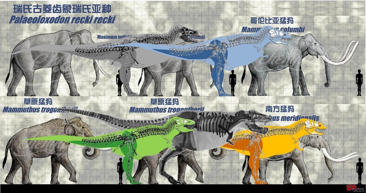 原创的彩图,不同的肢体部分已经对过比例了,大象都是中恐的菊石画的,拿来作对比。