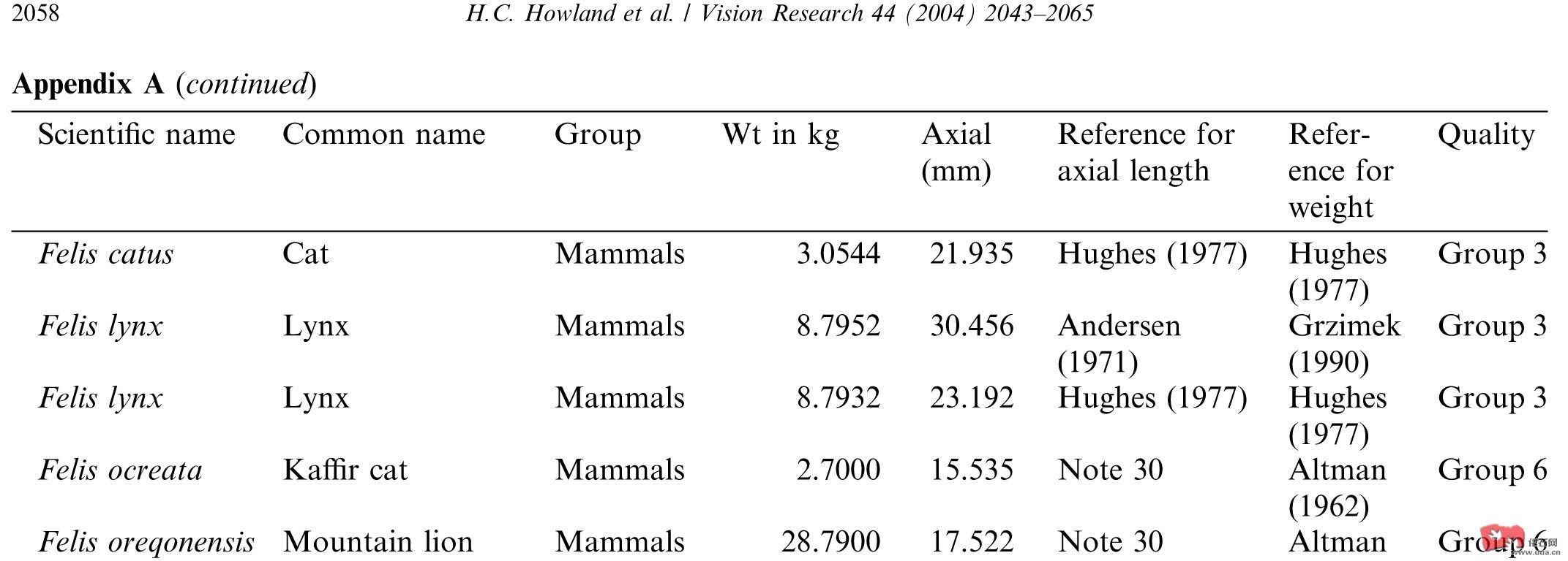 狮子和虎的眼睛是否和他们的生活的地方有关系,狮子在开阔地,而虎更多在半林地和长草地里面活动。里面狮的体重给的比虎小,虽然说应该和眼睛大小来源个体没什么关系,但是除非虎取得是幼年虎,否这狮眼睛Axis length比虎大,应该没有任何问题。其实这个问题看图也是比较明显的,可以看出差不多大的狮子的眼眶长度是比虎长一些