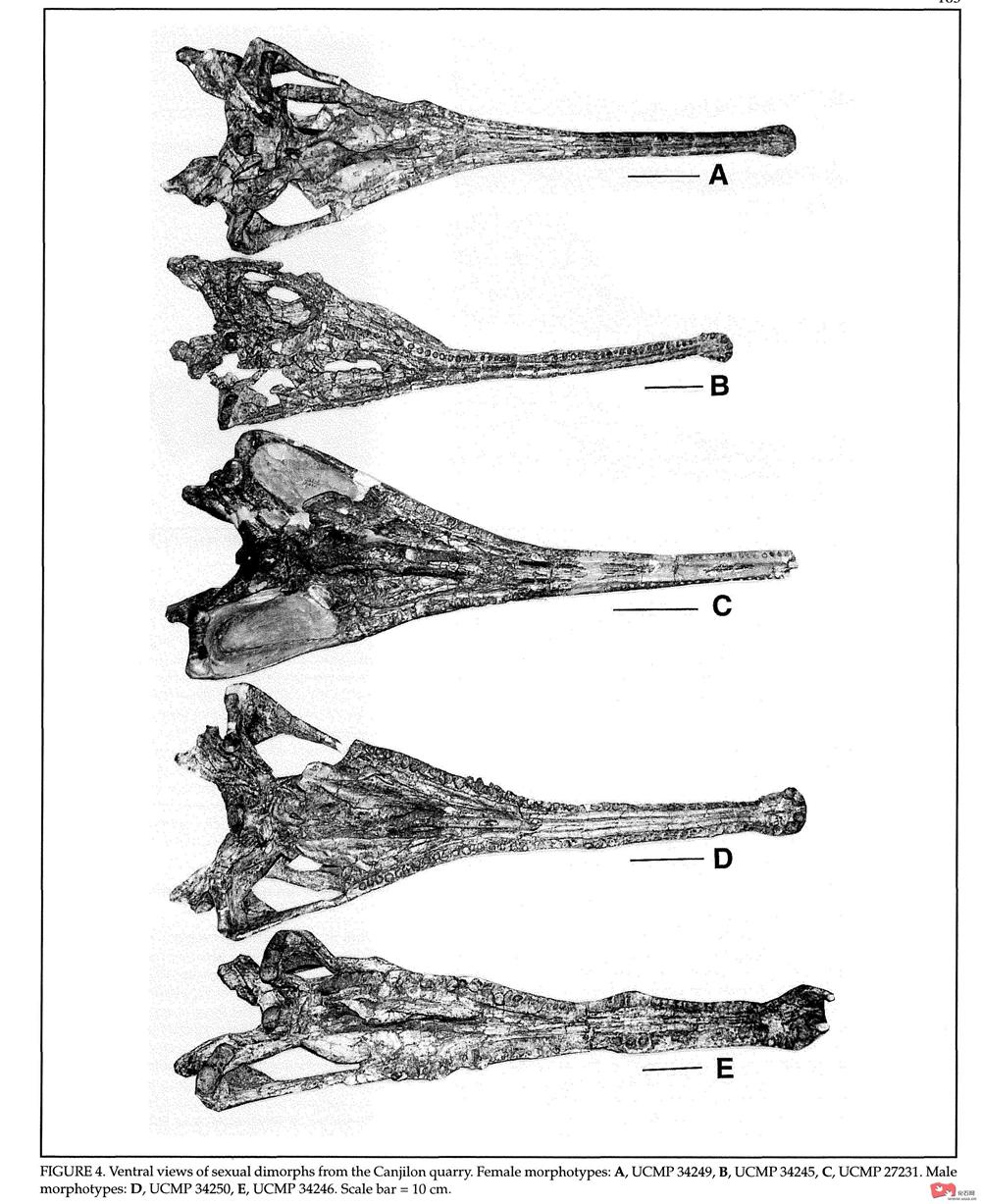 当然也有人认为植龙类里面很多同属动物的不同种其实是两性差距,而且参考一些现代爬行动物,两性差距可以到25%,越老越大的个体差距也越大
