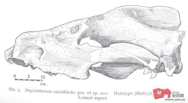 除了我曾经介绍过的大型鬣齿兽科动物,像是北非的Megistotherium osteothlastes,古北区的Hyainailouros sulzeri,和北美洲的Hemipsalodon grandis,O.M.S.I No.619的个体的颅骨全长甚至达到了骇人的450MM。
