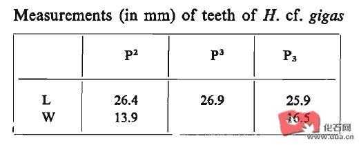 还有Hyaenodon gigas相似种的部分前臼齿长宽测量数据。大家有兴趣可以比较看看。