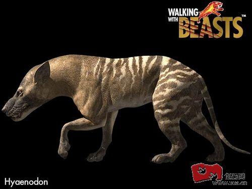 下图2个,第一个是Prolimnocyon;第二个就是似鬣狗翼齿兽。