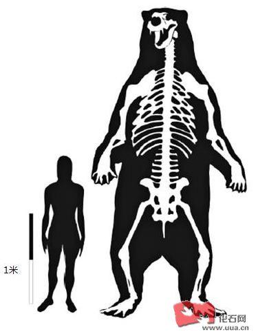 作者描述的最大a. 南美短面熊化石体型比较。。。