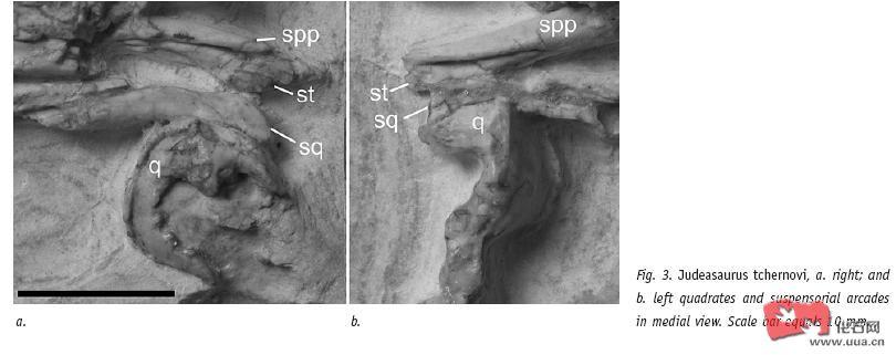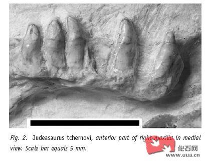 Haber and Polcyn (2005)根据Judeasaurus tchernovi和其他海生蜥类包括胀蜥Adriosaurus 及Pontosaurus,基层沧龙类包括特提斯龙Tethysaurus, Haasiasaurus及 大洋龙属Halisaurus的比较,最后确定Judeasaurus tchernovi是巨蜥下目(Varanoidea)中的新属种, 前沿融合及圆状的方骨显示犹太蜥Judeasaurus tchernovi和沧龙类有关,它和晚白垩纪另一类海生蜥类Dolichosauridae有关系。