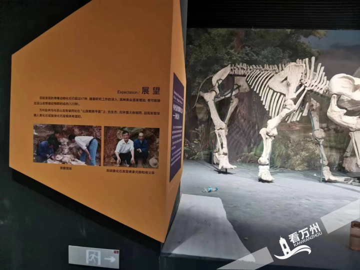 ↑ 姜元顺和父亲发现东方剑齿象化石的事迹,在重庆自然资源科普馆进行了展陈。