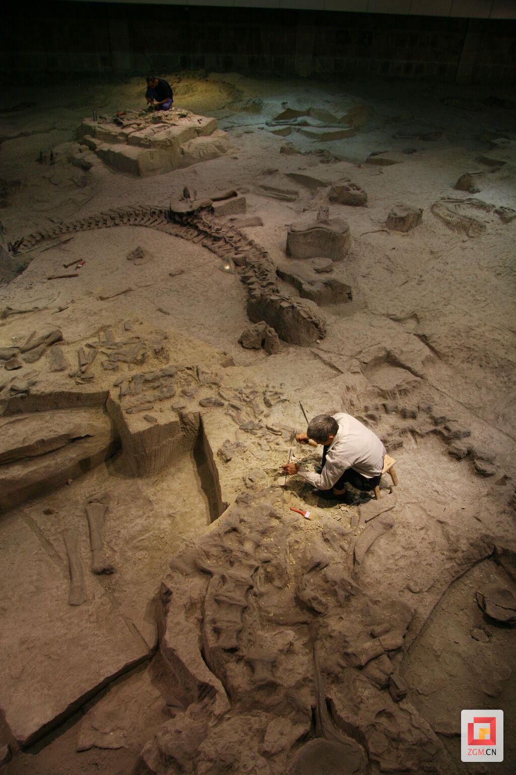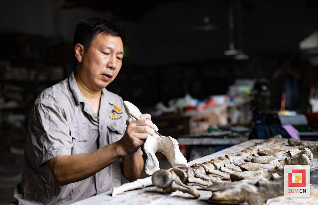 在自贡恐龙博物馆,胡永忠和同事们修复的各种恐龙化石,都是无价之宝。“几亿年前的生命,经过我们的修复呈现给几亿年后的观众,这种感觉非常奇妙!”胡永忠说,如果想要修复一块化石,需要在显微镜下观察化石的结构和形态,再用笔去慢慢修复,剥去上面的围岩,让化石的骨骼结构逐渐显现出来。馆里一名前辈同事曾耗时3年才修复劳氏灵龙化石,自己自工作以来已经和同事修复与复原了20多具恐龙骨架。