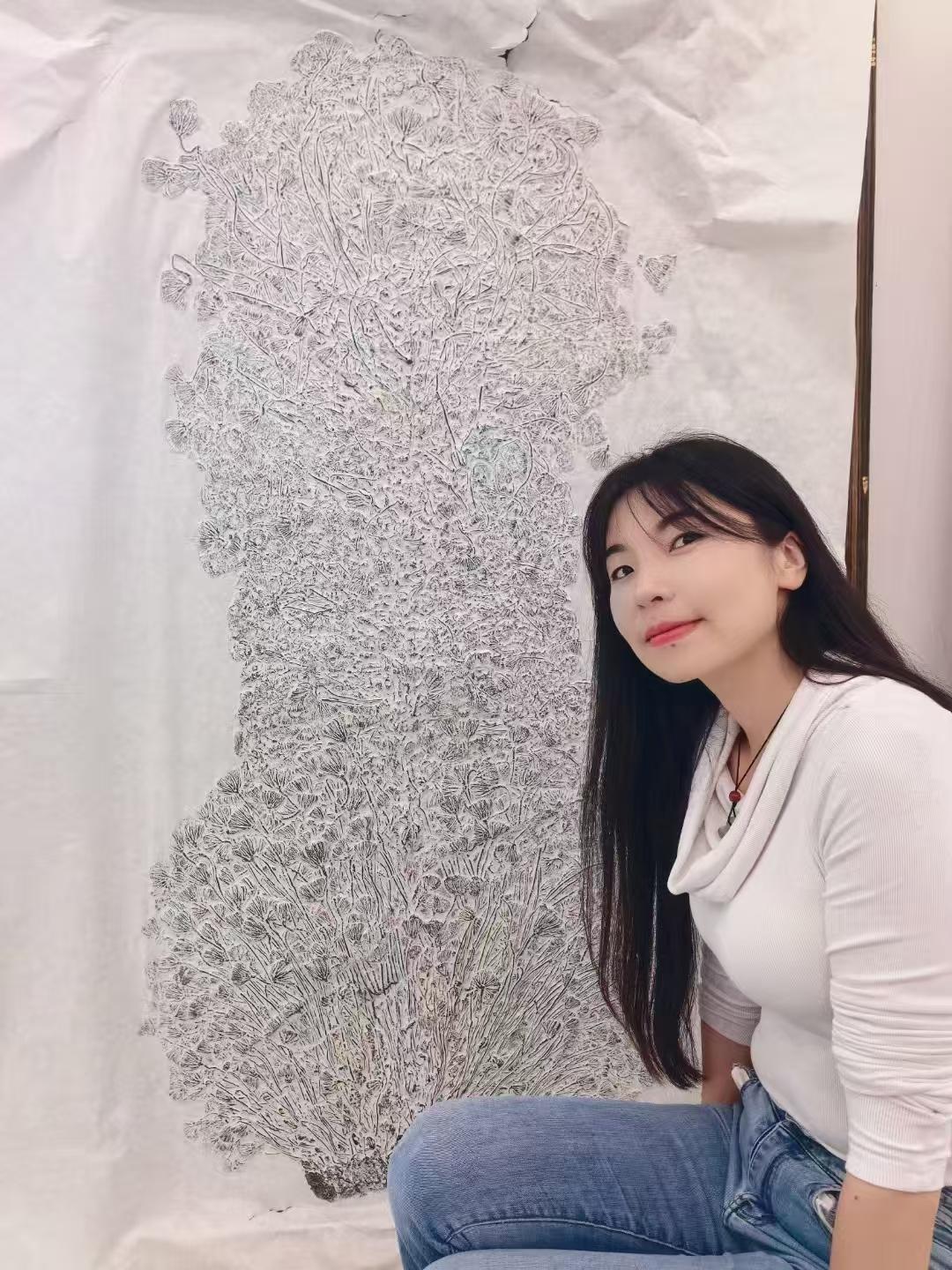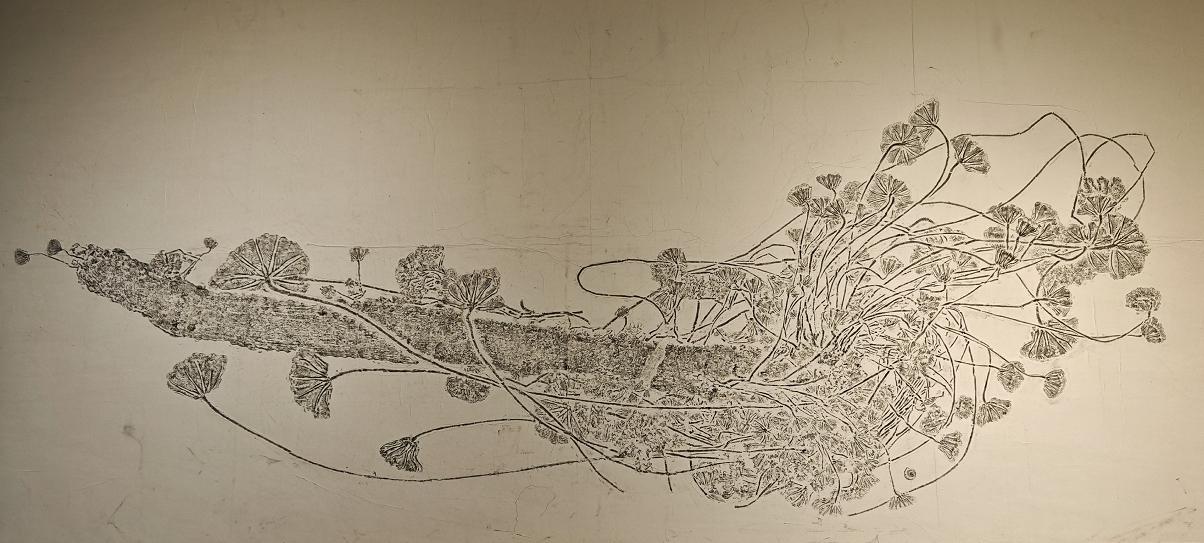 2023年,陈泫池收到一位朋友寄来的化石拓片,请她帮忙题字。看到拓片后,她瞬间被这种水墨画一般的艺术形式吸引了,同时心中一动:“虽然化石本身不能移动,但拓片可以啊。只要我把化石的精髓拓进去,一样可以让人们见识到关岭古生物的魅力。”