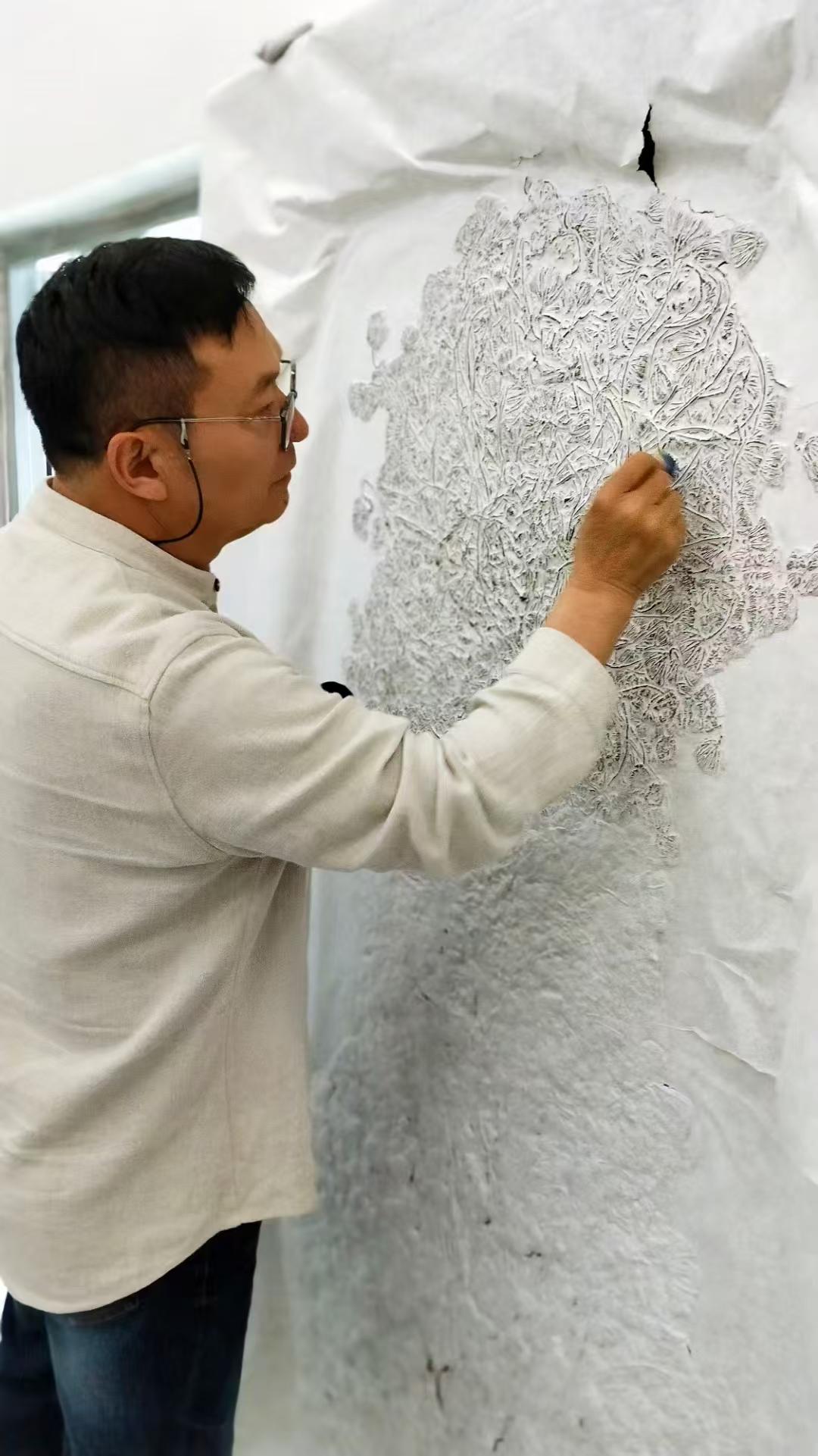 陈泫池不敢怠慢,由于觉得自己积淀不够,便向领导申请,邀请江苏盐城金石传拓技艺传承人管业荣,到现场进行了为期一周的线下指导。其间,她和管业荣共同完成了4幅拓片,学到了拓印大幅作品的经验。