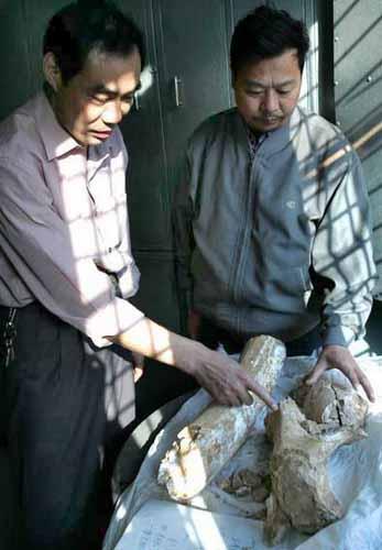 据县文物管理所所长李广介绍,3月30日,镇安县青铜关镇东平村三组薛宗珍在自家地里取土时,发现了一类似骨骼的物体,经文管所考证,骨骼物体是大象化石。因为土质变迁,只保留了40厘米的大象剑齿和30厘米的大象下颚骨,距今至少10万年。由此可以推断,那时,我省南部曾有大象活动,陕南为热带气候。同时,象骨化石的发现,为研究自然气候的变迁,提供了必要的佐证。[华商报]记者 强军、薛振宇/摄影报道