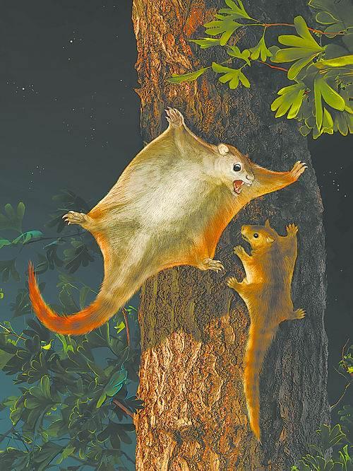 说到画科学复原画,早在啄木鸟小组成立之前,赵闯其实已经小有名气。2006年初,中国古生物学家在内蒙古宁城发现了一枚带翼膜的哺乳动物化石。这是一种新发现的哺乳动物,古生物学家在哺乳动物族谱里专门为它创建了一个新的类别—翔兽目,并把它命名为“远古翔兽”。而在赵闯为其创作的科学复原图中,两只翔兽在一棵银杏树前展开双翼做飞翔状。这幅图被用作2006年12月14日出版的英国《自然》杂志封面,据说这是《自然》杂志第一次使用中国人创作的绘画作品作为封面。