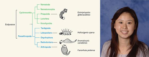 寒武纪化石为了解早期生命的起源和演化提供了直接的证据,尤其是一些具有独特形态特征的化石种类往往对揭示现生物种之间的进化联系至关重要。蜕皮类动物是动物界里最大和最丰富的一个类群,包括今天的八个动物门,它们的表皮随着动物生长周期性蜕掉。根据身体构造的不同,蜕皮类动物又可分为环神经动物和泛节肢动物两大类。环神经动物包括现生的线虫动物、线形动物、动吻动物、铠甲动物和曳鰓动物五个门,均为不分节的蠕虫,在身体前端具有一个可外翻的口,口后有一个环状脑神经。泛节肢动物包括缓步动物、有爪动物和节肢动物三个门, 具有分节的身体和成对的腿,头部背侧具有一个两侧对称的脑。虽然分子分析显示环神经动物和泛节肢动物具有紧密的亲缘关系,但它们之间巨大的形态结构差异,使得进化生物学家长期以来难以理解两者之间的具体进化关系,因此早期蜕皮类动物化石的研究对解开这些进化之迷十分重要。