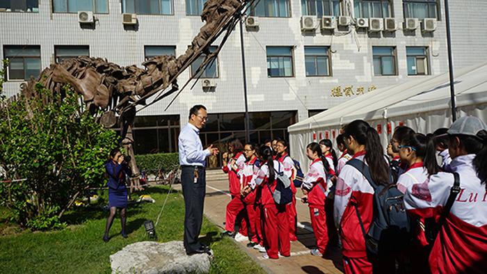 江大勇教授(左一)为中学生做古生物知识科普讲座