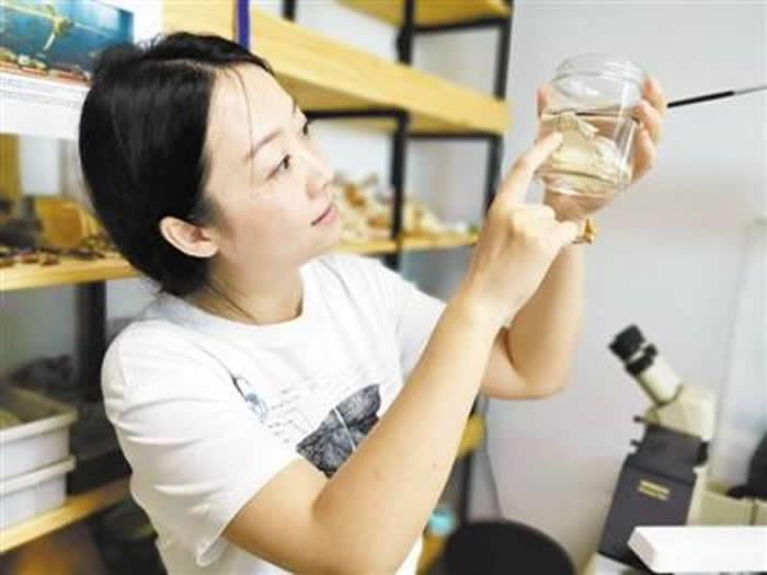 卢静最喜欢的,是珍稀的古老鱼类——拉蒂迈鱼。她在书架上贴了一张动漫《龙珠》的内页,画面是悟空和一条大鱼。“小时候读这本漫画时,我就对这条鱼印象很深,几十年后才知道原来这就是拉蒂迈鱼。”她说。