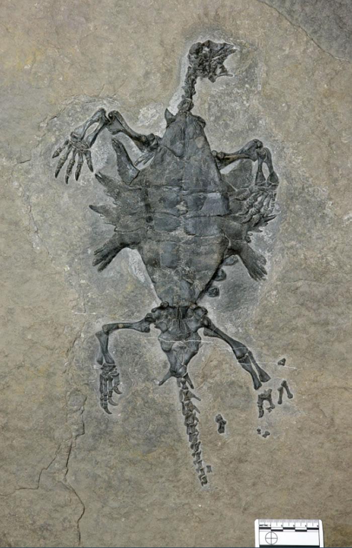经过几个月的努力,龟甲表面的雕饰、骨片间的接缝、细小的血管和神经孔……这些化石的细部结构最终一一显露出来。“也得益于这样的修理,标本背部的结构一览无余。”可见当时龟类背部的甲壳才刚刚开始出现,而且背甲的雏形与肋骨和脊椎的特化有显著的关联。这为龟甲的起源提供了直接的证据。