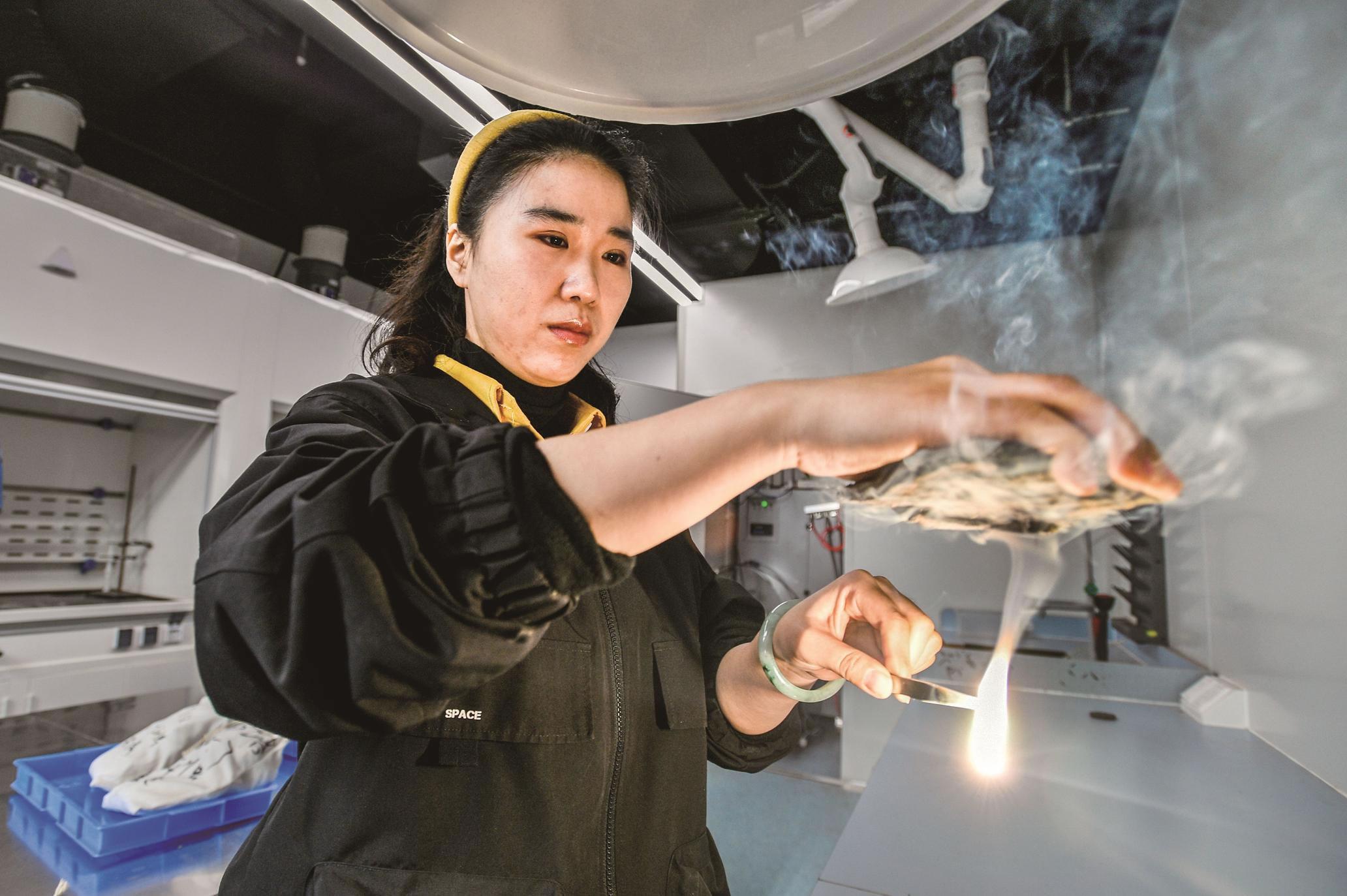 纵瑞文笑着说,搞古生物的师妹总是让人肃然起敬,哪怕是有的化石拿来给她练手,修废掉了,也不会显露出自己心疼。在师兄的指导下,尹家一可以将自己采集回来的化石,进行酸泡、精修、饰白和拍照等专业化的处理。尹家一重点研究的领域是牙形石,这是一种微体化石,相关研究可以用来测定底层年代。为了在石灰岩等岩石中,寻找到完整的牙形石踪迹,尹家一除了碰运气似的采集大量原石,还需要利用显微镜等设备,细心地进行挑选。这样的研究内容,让女生的耐心细致,显示出优势。