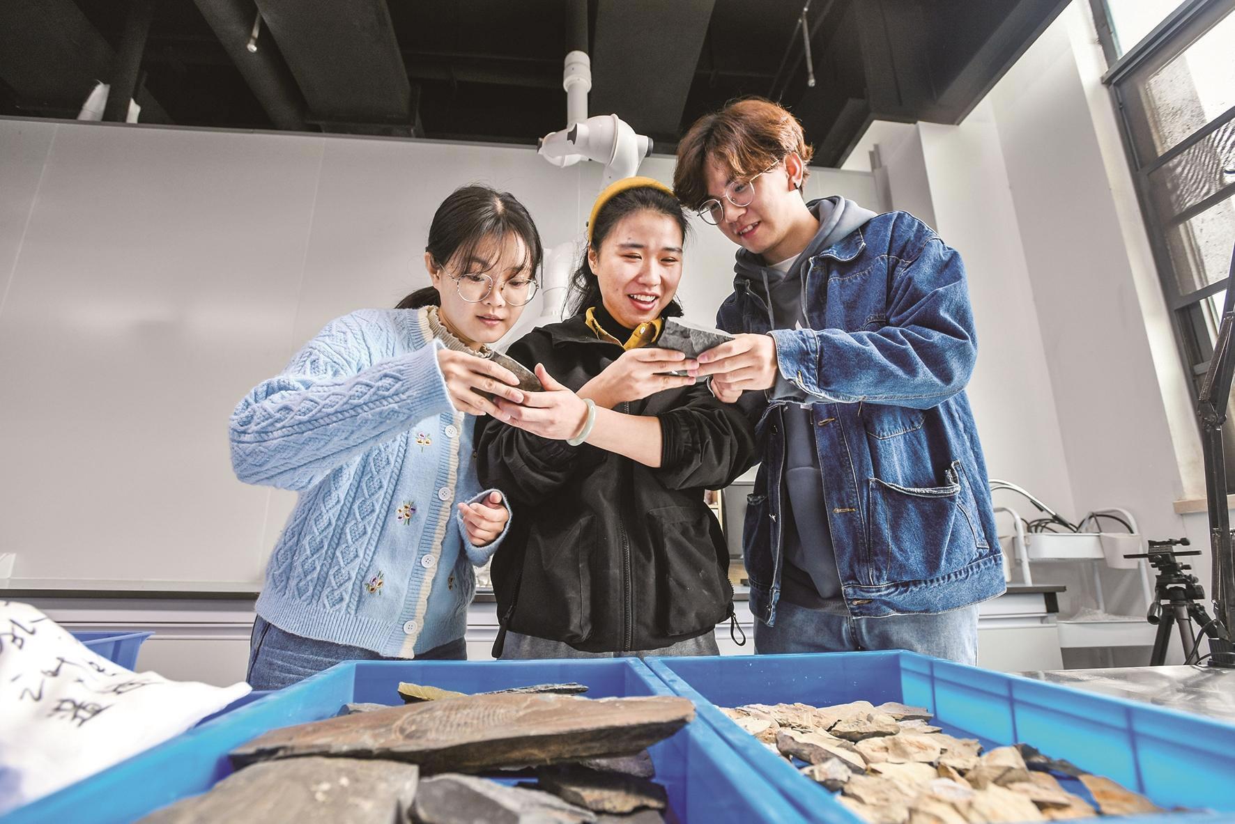 去年,该校地学院招收博士57人,女生仅10人,这10个女生中只有4人学古生物,尹家一就是其中之一。“每个人都会有自己感兴趣的事物,能去做自己喜欢的事就幸运啊。”尹家一并不在乎别人的眼光,就像两年前她不顾同事的挽留,毅然辞去在苏州一家药企的高薪工作,决定去做个修化石的女博士。
