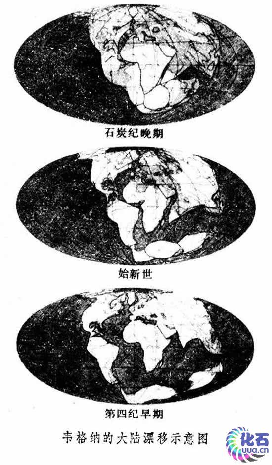 韦格纳等提出大陆漂移证据主要有:①大陆岸线的相似性。南大西洋两岸(非洲与南美)的海岸轮廓相互匹配,可以拼接成一个整体,说明这两个大陆曾相连接。②褶皱系的延续性。南大西洋两岸,即非洲南端与南美布宜诺斯艾利斯之南的二叠纪褶皱山系同是东西走向,且地质情况相当,可以相连;欧洲挪威、苏格兰、爱尔兰与北美纽芬兰的加里东褶皱带也是可连接的。③古冰川的分布。南方诸大陆(南美、南非和南澳大利亚)和印度南部广泛分布着晚古生代的冰川痕迹,若将分布地拼合在一起,能较好的解释冰川分布之规律。④化石。在南方诸大陆和印度南部的晚古生代冰碛层之上普遍覆有具舌羊齿植物群化石的含煤地层,证明南方诸大陆与印度过去是一个整体。