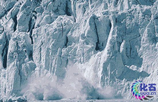 冰川运动 冰川积累区的冰层达到一定厚度时,坡度和冰自重所产生的剪应力就使冰按照冰流律开始运动。山谷冰川的冰流速表面大于深部,中央大于两侧,在平衡线附近流速最大,而向源头或末端流速降低,冰川运动部分由塑性变形或蠕变产生,部分是块体滑动,有些冰川有时呈现快速前进状态称为冰川跃动(surge)。