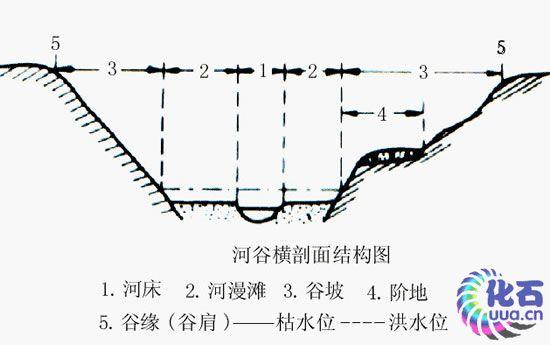 河水所流经的带状延伸的凹地。河谷内包 括了各种类型的河谷地貌。从河谷横剖面看,可分为谷底和谷坡两部分。谷底包括河床、河漫滩;谷坡是河谷两侧的岸坡,常有河流阶地发育。谷坡与谷底的交界处称谷坡麓,谷坡与原始山坡或地面的交界处,称为谷肩或谷缘。从纵剖面看,上游河谷狭窄多瀑布,中游展宽,发育河漫滩、阶地,下游河床坡度较小,多形成曲流和汊河,河口形成三角洲或三角湾。河谷是在流水侵蚀作用下形成与发展的:水流携带泥沙侵蚀使河谷下切;水流的侧蚀使谷坡剥蚀后退,包括谷坡上的片蚀 、沟蚀、块体崩落;溯源侵蚀使河 谷向上延伸,加长河谷。3类侵蚀方式经常同时进行,只是不同时间、地段各有所不同。河谷的发育受到气候与构造的影响。一般河谷形态类型有 :隘谷、峡谷、宽谷、复式河谷。与岩层产状关系可分为顺向河谷、次成谷、逆向谷、偶向谷。其他还有纵谷、横谷的地质构造分类,幼年谷、壮年谷、老年谷的侵蚀轮回分类,以及古河谷、谷中谷等。