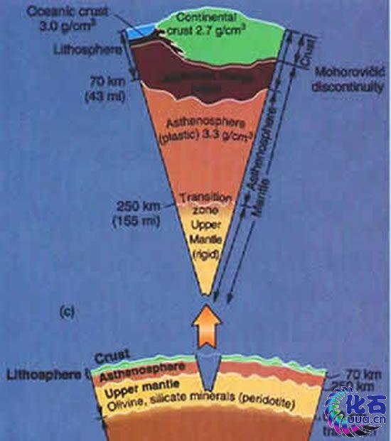 软流圈由巴拉鹿(J.Barrel,西元一九一四年)命名并介绍。巴拉鹿基于强度将地球之内部分成三带或三圈,由上而下,为岩石圈(Lithosphere)、软流圈(Asthenosphere)及中心圈(Centrosphere)。岩石圈为地球的外圈,相当于地壳(EarthCrust)或矽铝带(SialZone)之部分,其厚度约达一百公里。岩石圈其有刚性(Rigidity),并形成横造板快(TectonicPlates)。岩石圈下,几乎无直接观察之方法,因此地质学家依据各种自然现象及地球物理之测勘。而假定有种种层圈之存在。当火山喷发时,常有极高温之熔岩或岩浆之喷出,因此主张在岩石圈下,必有一软流圈或火圈它(Pyrosphere)之存在。岩石圈下之软流圈为较弱的层圈,具有可塑性或黏性流,因此较岩石圈易变形:软流圈或火圈之下,地球之核心部分,必有中心圈之存在。
