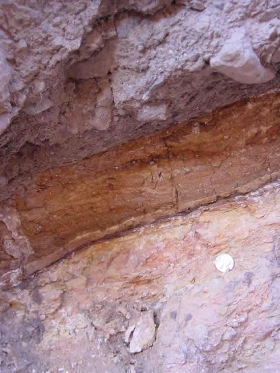 断层泥中的粘土矿物是层状硅酸盐(高岭石、伊利石、绿泥石、蒙脱石等)和层链状硅酸盐类(海泡石等)。片状粘土矿物一般具定向排列,并平行或与断面斜交或环绕碎砾。常见与断层面斜交的面理,其锐夹角指示断层泥形成时沿断层面剪切滑动的指向。由于断层活动的多期性和复杂性,断层泥条带可以发生破碎、混杂、面理弯曲、柔皱等变化。碎砾包括岩石的角砾和单矿物角砾,其砾径小至1毫米以下,大至几厘米以上,形状主要为棱角状、透镜状、浑圆状等。角砾的表面刻有断层活动性质、构造环境等重要信息,如擦痕、钉头痕。标志着断层长期蠕滑的碾磨纹,地震断层活动成因的冲击坑和直擦线等,以及复杂的溶蚀形貌。这种形貌从简单逐渐向复杂的发育过程与该碎粒的形成时间或与断层活动的年代有关。断层泥是断层带中的软弱夹层,如同断层活动的润滑剂,在活断层中常见。