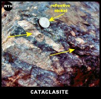 在某些碎裂岩中,还可能有外源物质和由于蚀变而形成的新矿物。碎斑的形状与断层带的力学性质以及原岩的物理性质有关。一般来说,张性断层带中,碎斑多呈棱角状;压性断层带中,碎斑多为透镜状,也可能有不同程度的圆化。由同一次断层活动产生的碎裂岩中,同成分的碎斑形状可能相似。碎斑内部具有微破裂,也可出现轻度塑性变形的光学应变效应,如波形消光、变形纹、变形带、膝折带、机械双晶及其弯曲等。碎裂岩一般具有碎斑结构、碎粒结构,块状构造和带状构造,球对称组构或低密度的优选方位。