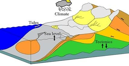 原有岩石的风化解离和溶解提供了最重要的沉积物来源,其他来源是生物物质,火山物质以及少量宇宙物质,它们占比较次要地位。风化作用是沉积作用过程中最早的一个阶段。沉积物质经风化作用形成之后进入搬运阶段。对沉积物进行搬运的主要营力是水和风,此外,还有重力和生物等的搬运。