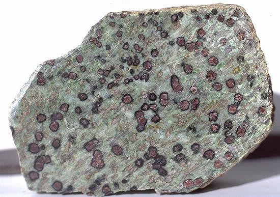 榴辉岩一般为深色,粗粒不等粒变晶结构,块状构造,比重较大,呈块状体或层状体产出。常以次要的特征矿物命名,如蓝晶石榴辉岩等。榴辉岩的化学成分与玄武岩相似,产状和成因比较复杂。榴辉岩可作为包体产在金伯利岩中;也可在石榴橄榄岩侵入体中呈条带产出;可与麻粒岩相和角闪岩相的岩石伴生;也可在高压变质带的蓝片岩中出现。产状的不同,反映了榴辉岩成因的复杂性。