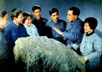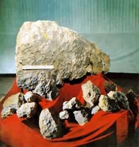 1976年3月8日陨落于中国吉林市郊,重1770公斤,是迄今世界上收集到的最重的石陨石。标尺为30厘米。