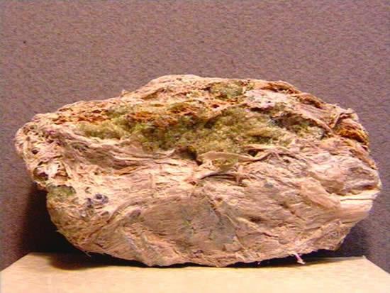 化学组成为(Mg,Al)2Si4O10(OH)2·4H2O、晶体属单斜晶系的链层状结构硅酸盐矿物。也称凹凸棒石。通常成白、浅灰或浅褐色的粗纤维状、土状以及类似树皮的片状集合体,后者的裂片平坦,并能弯曲,故俗称山软木。光泽暗淡。硬度2~3,比重2.1~2.3。干燥时具吸水性。坡缕石可由沉积成因,或由富含镁的岩石和基性火山灰蚀变而成。世界最主要产地为西班牙的瓦拉卡斯,中国产地主要在江苏安徽两省毗邻地区。