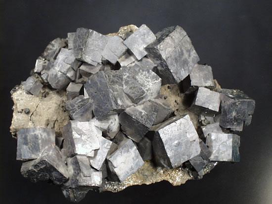 方铅矿具氯化钠型晶体结构。呈铅灰色,强金属光泽,摩斯硬度2.5,比重达7.5,具完全的立方体解理。晶体呈立方体,有时为八面体与立方体的聚形;集合体常成粒状和致密块状。主要是热液成因的矿物,几乎总是与闪锌矿共生。方铅矿在地表易风化成铅矾和白铅矿。