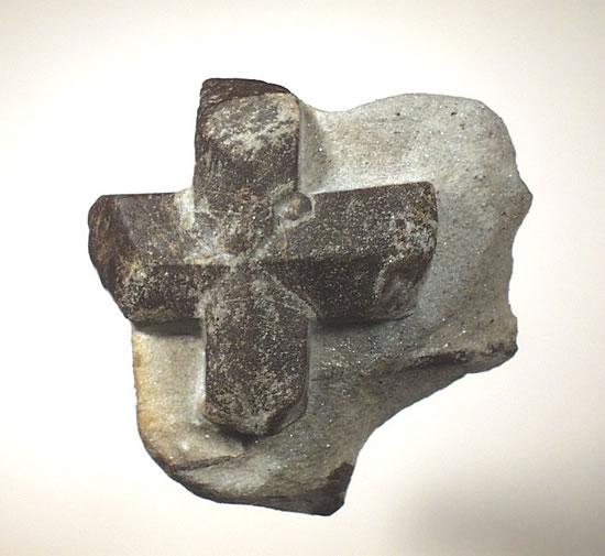 化学组成为Fe2Al9[SiO4]4O6(OH)2、晶体属单斜晶系的岛状结构硅酸盐矿物。晶体通常粗大,呈短柱状,十字形贯穿双晶常见,故名。棕红、红褐、淡黄褐或黑色,玻璃光泽。摩斯硬度 7.5。比重3.74~3.83。十字石是富铁、铝质的泥质岩石经区域变质作用的产物,见于云母片岩、千枚岩、片麻岩中,是中级变质作用的标型矿物。十字石偶尔呈透明,可作宝石。