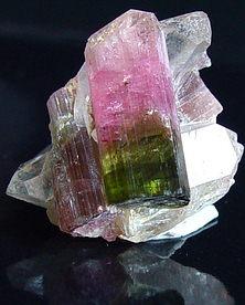 颜色随阳离子成分不同而异,富铁的黑电气石呈黑色;富锂、锰、铯的呈玫瑰色或深蓝色;富镁呈褐、黄色;富铬呈深绿色。电气石还常沿柱体,或垂直柱体的横断面上形成不同颜色的色带。玻璃光泽;莫氏硬 度7~7.5;比重3.03~3.25,随成分中铁、锰含量的增加而增大。电气石成分中富含挥发组分硼及水 ,成因多与气成作用有关 。一般产于花岗伟晶岩中,也可作为变质矿物产于电气石变粒岩中。在镁矽卡岩中也可见。