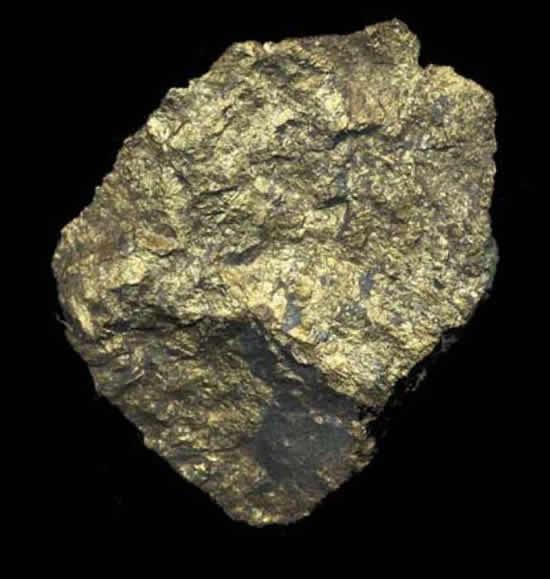 化学成分为CuFeS 2、晶体属四方晶系的硫化物矿物。含铜34.56%。是分布最广的铜矿物,是炼铜的最主要矿物原料。黄铜矿呈黄铜色,金属光泽;粉末呈绿黑色。摩斯硬度3.5~4,比重4.1~4.3。常呈致密块状或分散粒状产于多种类型铜矿床中。黄铜矿在地表易风化成孔雀石和蓝铜矿。