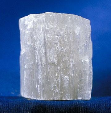化学组成为Ca[SO4]·2H2O、晶体属单斜晶系的含水硫酸盐矿物。晶体呈板状,少数呈柱状,常见燕尾形双晶。白色至灰色,因含杂质可呈浅黄色、浅褐色等,玻璃光泽,解理完全,解理面上显珍珠光泽。薄片具挠性,摩斯硬度1.5~2,比重2.3。