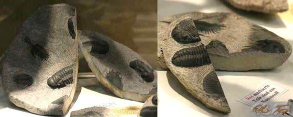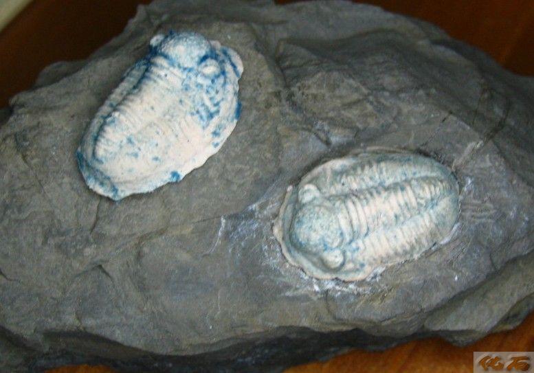从图上可以看出来,上面的三叶虫都是树脂做的,然后粘在真正的岩石上。