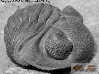 三叶虫可以算是古生代海洋的霸主,其形体大小从几毫米到几十厘米不等,身体分头胸尾三部分,其背甲中部凸起为轴叶,两侧为肋叶,具有明显的三分性,故称三叶虫。由于其具有较为坚硬的外骨骼,往往比较容易保存为化石,成为我们了解古代海洋的一扇窗口。另外三叶虫的化石很多,并不单纯是因为它具有外骨,而是因为三叶虫要不断脱壳,外部的骨骼束缚了它的长大,所以它要不断把外衣脱掉。这些脱掉的壳都大量保存成了化石,所以,尽管三叶虫化石很多,但是,完整的个体还是不容易找的(洪河)。