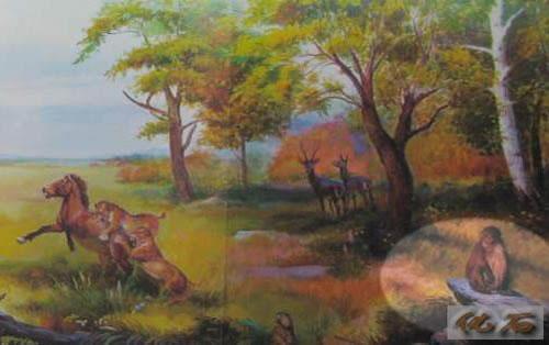 副鬣狗:副鬣狗的体型与现代的鬣狗接近。鬣狗其貌不扬,其后腿很短,跑起来有些颠跛。鬣狗常给人一种贪婪的印象,它们成群结伙抢劫其他动物的猎物,有着吃腐肉的恶名。其实现代鬣狗是奔跑追击型捕猎动物,以穷追并群体合作的方式追捕猎物,它们的食物比例中以自己捕食所得的新鲜猎物为主,抢占别人的猎物只占很小部。鬣狗与其他食肉类最大的不同之处在于其特有的粗壮上下颌骨及前臼齿,可轻易咬碎骨骼,从中摄骨髓。一群鬣狗可以在几分钟内吃光一整只斑马,连骨带肉丁点不剩。