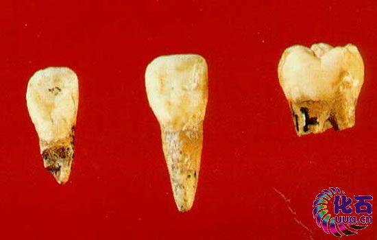 丁村人化石都发现于汾河东岸的 54100地点的砂砾层中,这层砂砾位于有古土壤条带的黄土内。3枚人类牙齿属于约12、13岁的小孩。右上内侧门齿齿冠舌侧中部低陷,两侧增厚并向内卷,使舌侧呈铲状,特称铲形门齿。舌侧接近齿根的部分有明显的舌侧隆突,由此延向切缘有两条指状突。右上外侧门齿也呈铲形,并有不明显分离的舌侧隆突。铲形门齿是黄种人和中国其他人类化石都具有的特征,与白种人显然不同。舌状隆突和指状突的发达程度则介于北京猿人与现代黄种人之间。齿根缺乏纵行浅沟,且较细小是与现代人相近的性质。右下第二臼齿,可能与两个门齿属于同一个体。齿尖分布为十字型。其相对高度比北京猿人大,咬合面的纹理不如北京猿人复杂。齿根尚未充分形成,但估计也较细弱。总之三枚牙齿的形态都介于北京猿人与现代人之间。